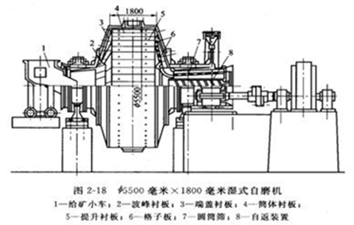 其工作原理與球磨機基本相同,不同的是它的筒體直徑更大,不用球或任何其他粉磨介質(zhì),而是利用筒體內被粉碎物料本身作為介質(zhì),在筒體內連續不斷地沖擊和相互磨剝以達到粉磨的目的。自磨機的最大特點(diǎn)是可以將來(lái)自采場(chǎng)的原礦或經(jīng)過(guò)粗碎的礦石等直接給入磨機。