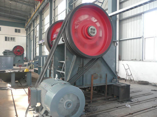 電動(dòng)機通過(guò)三角皮帶驅動(dòng)偏心軸,使動(dòng)顎作復擺運動(dòng),使物料受撞劈裂和彎曲而破碎,破碎后物料靠自重由排料口排出。