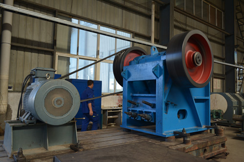 2. 活動(dòng)顎板對著(zhù)固定顎板做周期性的往復運動(dòng),時(shí)而分開(kāi),時(shí)而靠近。分開(kāi)時(shí),物料進(jìn)入破碎腔,成品從下部卸出;靠近時(shí),使裝在兩塊顎板之間的物料受到擠壓,彎折和劈裂作用而破碎。
