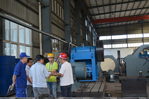 2. 活動(dòng)顎板對著(zhù)固定顎板做周期性的往復運動(dòng),時(shí)而分開(kāi),時(shí)而靠近。分開(kāi)時(shí),物料進(jìn)入破碎腔,成品從下部卸出;靠近時(shí),使裝在兩塊顎板之間的物料受到擠壓,彎折和劈裂作用而破碎。