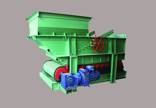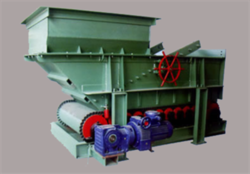 倉口下部安裝導料槽,驅動(dòng)滾筒組由膠帶、滾筒、軸承座、電動(dòng)機及其無(wú)級變速機安裝于底架上,外側有驅動(dòng)手輪。導料槽下內兩側裝有密封護板,手動(dòng)閘門(mén)裝置可實(shí)現出料口的開(kāi)閉或下料大小的調整。