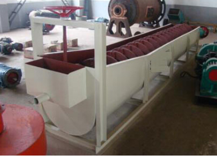 During operation of the sand washing machine, the materials are fed uniformly by feed hopper, and a specified amount of water is injected into the main trough, the transmission part drives the screw shaft to rotate at rated speed, forcing the materials to roll over in the trough and move forward to the discharge opening. The fine graded materials and impurities are discharged with water to overflow weir, and the coarse ones get out from the discharge opening so as to accomplish the washing, grading, impurity removal and dehydration of materials.